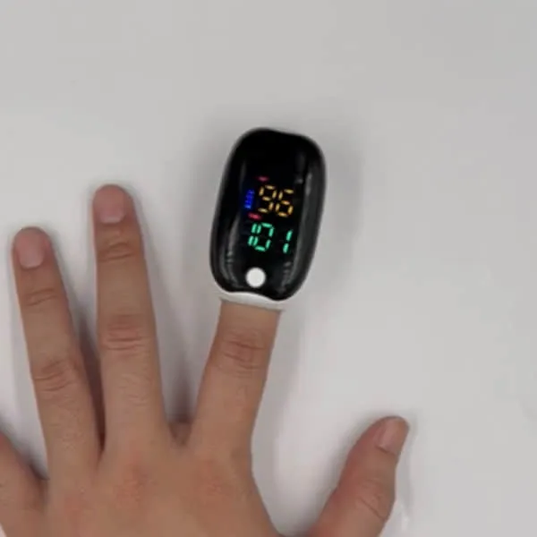 I slipped my finger in. The screen blinked after a few seconds—then stopped at 89% oxygen, 90 bpm.