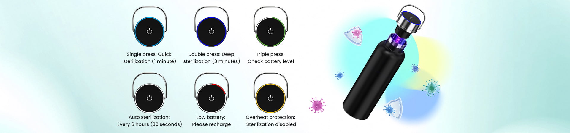 Simply press a button, and the built-in UV-C LED technology purifies your water and keeps the bottle clean. No hassle, no worries—just safe hydration at your fingertips.