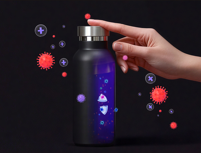 Unlike traditional filters that only trap contaminants, Hewelth UVClean actively sterilizes your water by exposing it to 180 seconds of UV-C light, eliminating up to 98.63% of bacteria, viruses, and other pathogens, including E. coli. This process also prevents mold buildup inside the bottle, keeping it odor-free and hygienic.